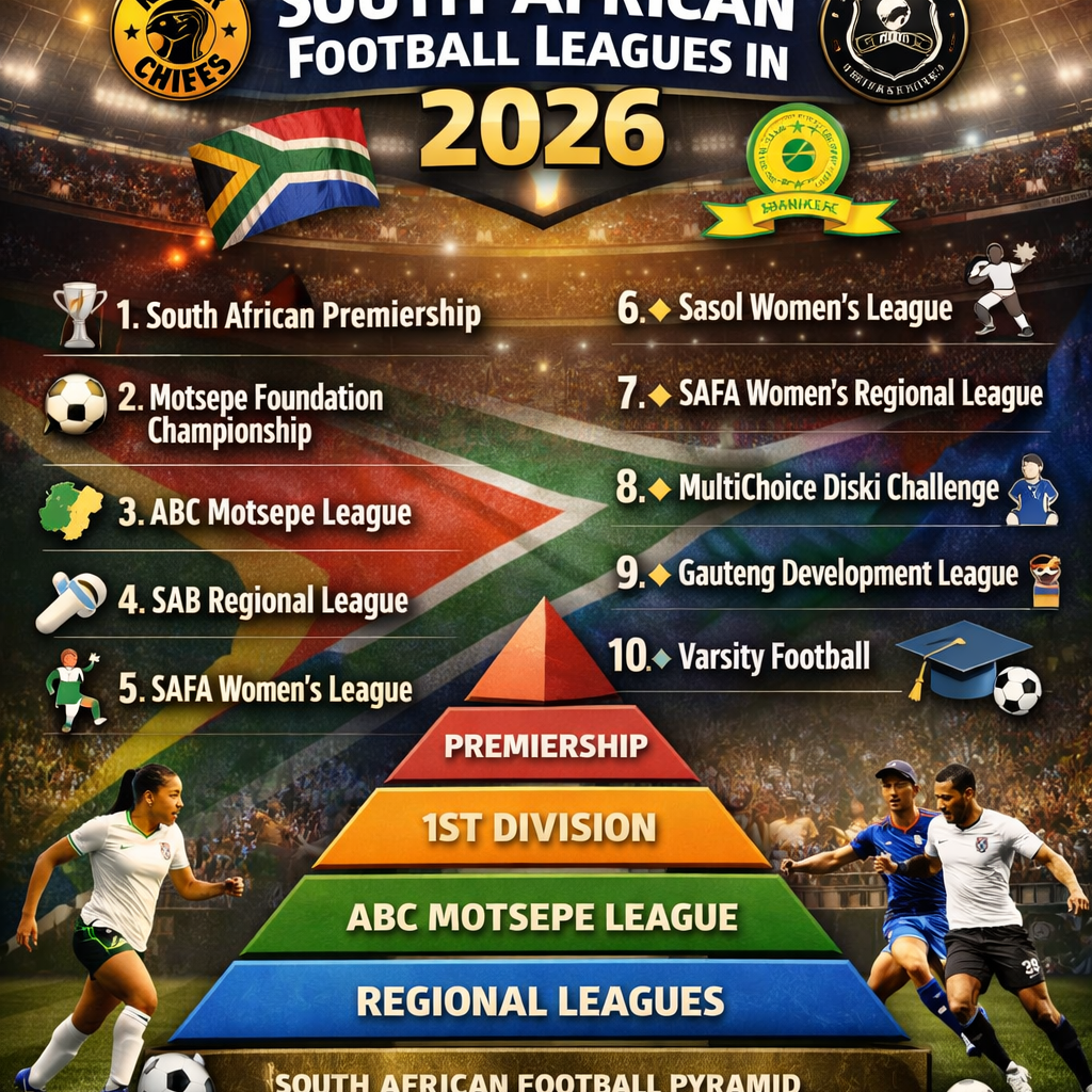 South Africa has one of the most structured and competitive football systems in Africa. Governed by the South African Football Association and the Premier Soccer League, the 2026 league pyramid spans professional, semi-professional, amateur, and development levels.